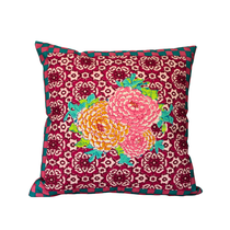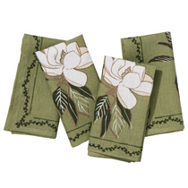 From left to right: Naga Garden Placemat | Magnolia Napkins | Hammered Pitcher | Large Oval Rattan Tray | Flamingo Estate Candle | Hand Embroidered Cocktail Napkins | Painted Plates | Tuileries Tablecloth | Hand Embroidered Pillow | Naga Garden Placemat
