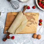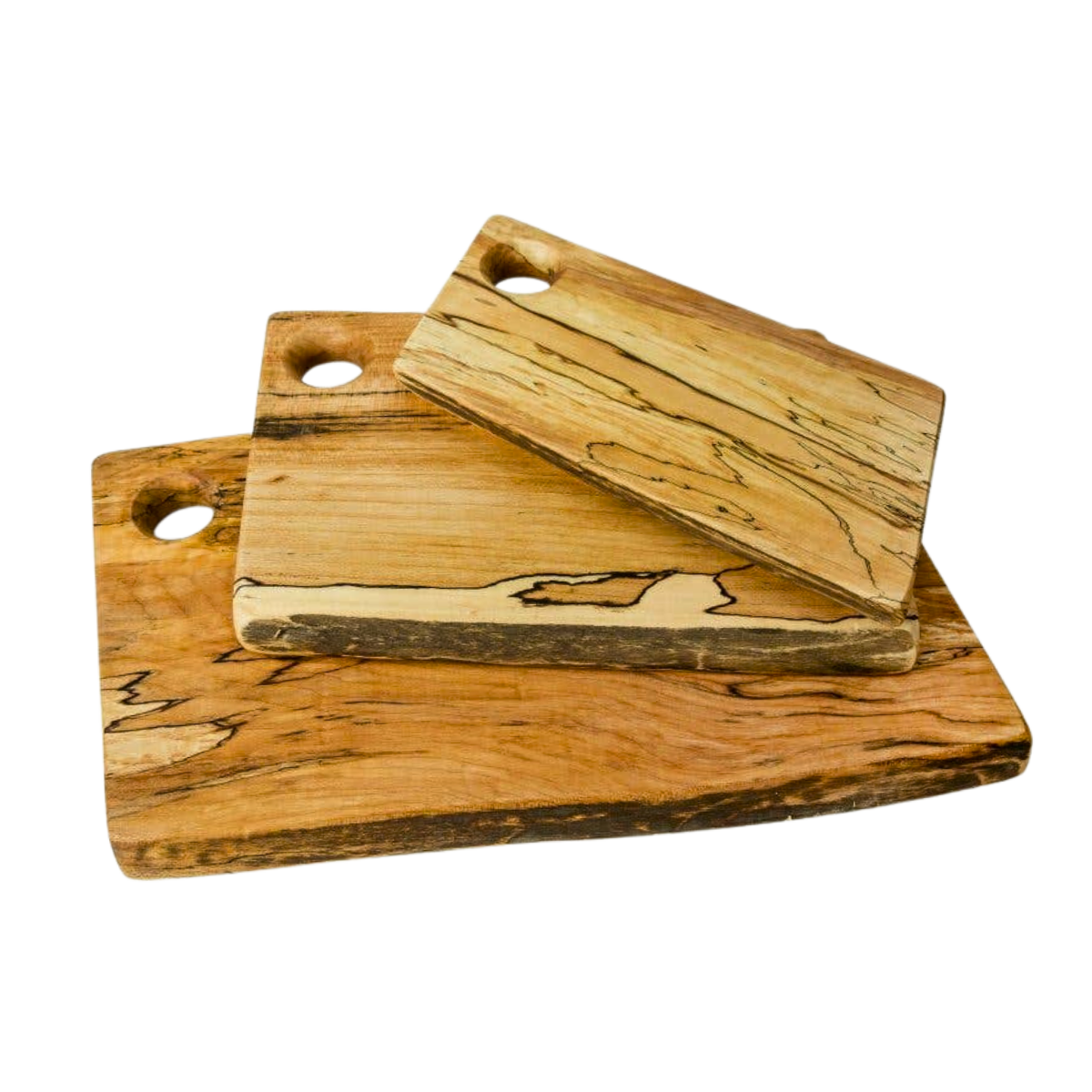 This board is crafted from reclaimed spalted maple—wood salvaged from fallen or dying trees in the early stages of decomposition, which creates the distinctive dark lines (“zone-lines”) and veining characteristic of spalted maple.