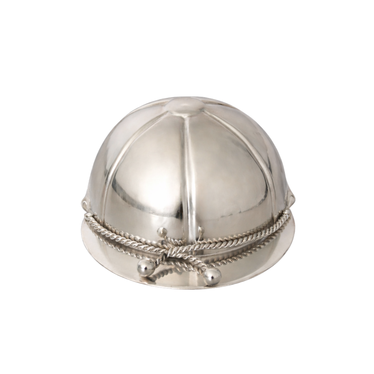1930s Napier 1oz, 2oz & 3oz measuring jigger in the form of a jockey cap. This highly collectible, silver plate jigger has been professionally replated in 100% silver. It is in excellent condition.