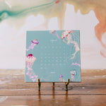 2026 Calendars are in stock and ready to ship! Twelve watercolor designs and letter-pressed numerals on 6" square cards. Nestled in a collectible linen box. Includes brass easel.