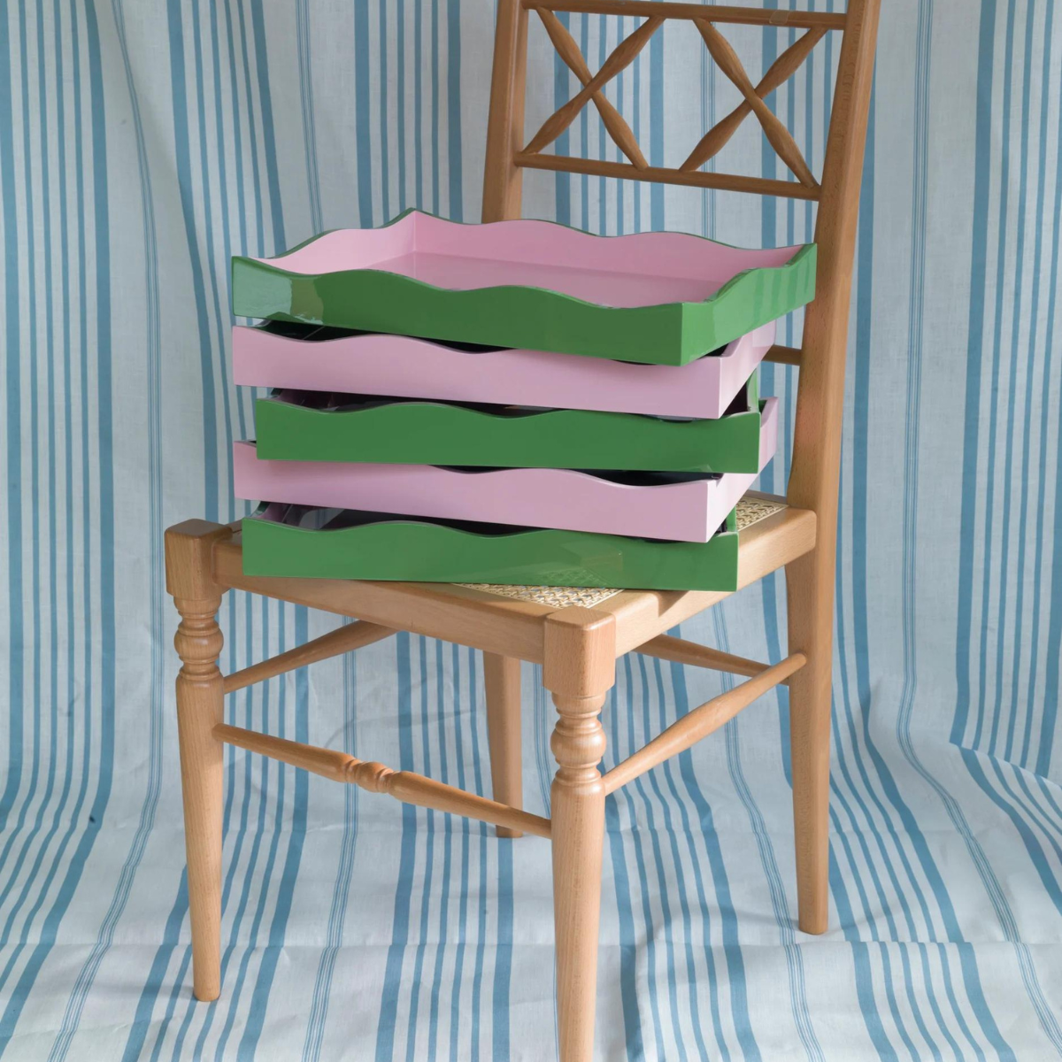 The Allegra Wiggle Tray is bright, bold and whimsical, adding so much fun to your coffee table, shelf, bar cart, bedside table....the list goes on! You can mix and match with each colorway or stick with your favorite. Each are beautifully and delicately hand painted in lacquer paint. Handmade in England.