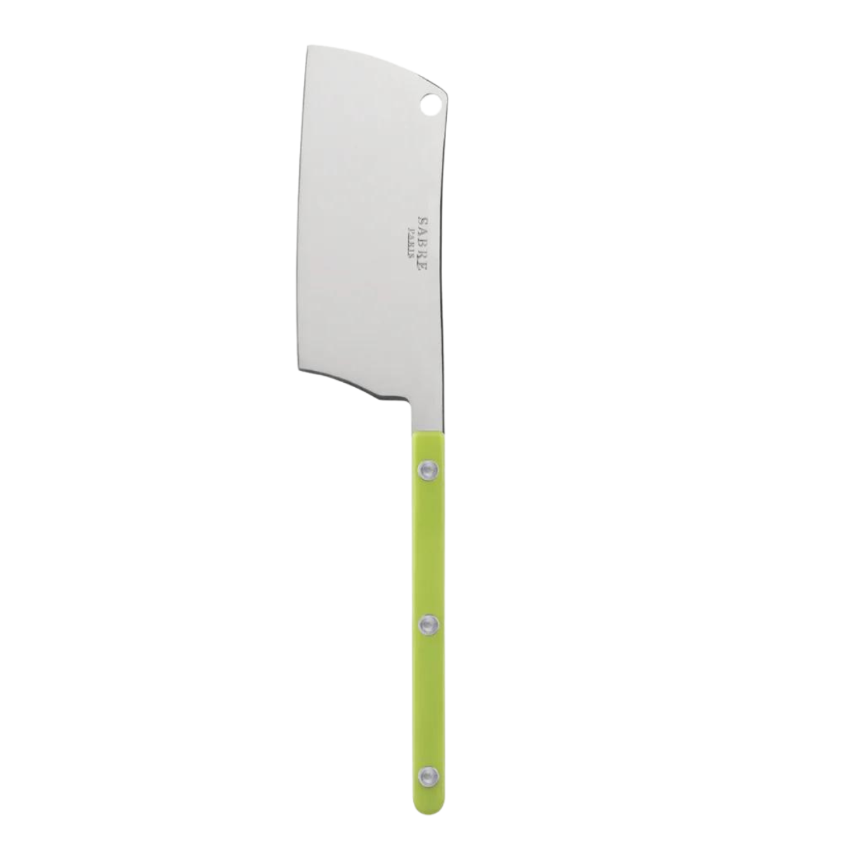 Add a touch of Parisian and color flair to your cheese boards with the Bistrot Cheese Cleaver. This stainless steel cheese knife features a playful acrylic handle with visible rivets in fun colors. Perfect for hard and semi-soft cheeses. Made in France.