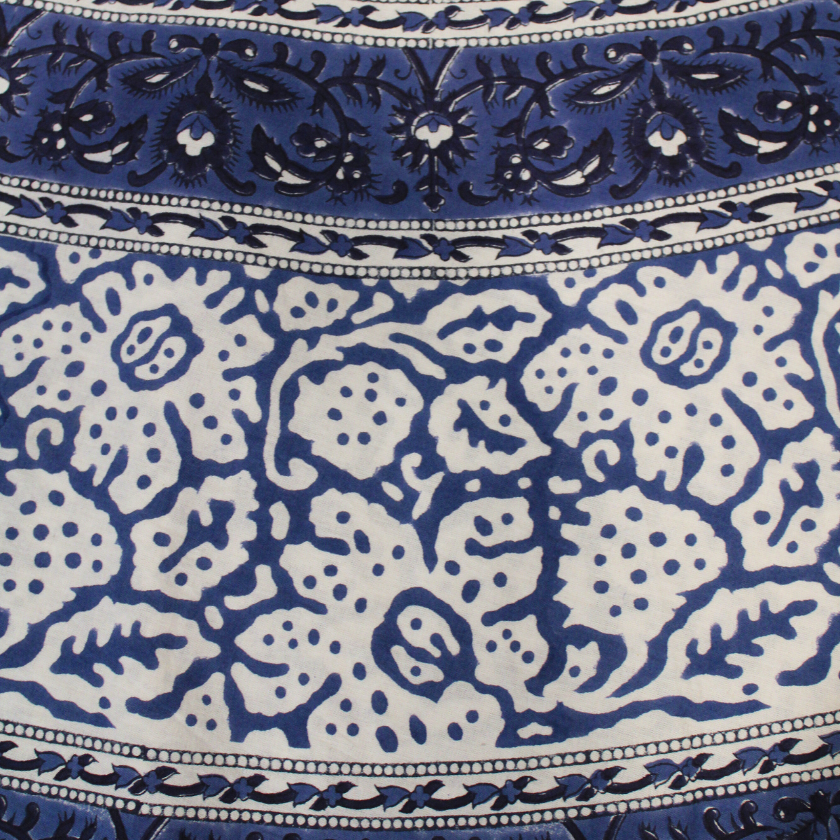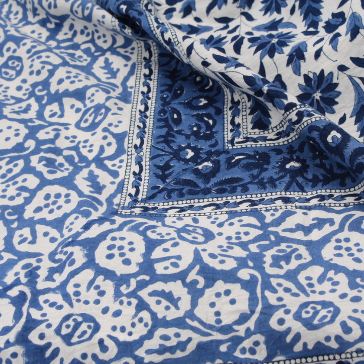 Ecru with Blue Floral Indian Cotton Tablecloth