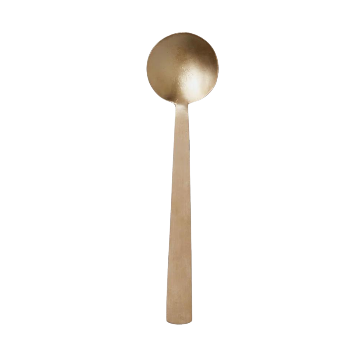 These serving spoons add a lovely richness to your meal with the warm pattina of hand-hammered brass. Two sizes.