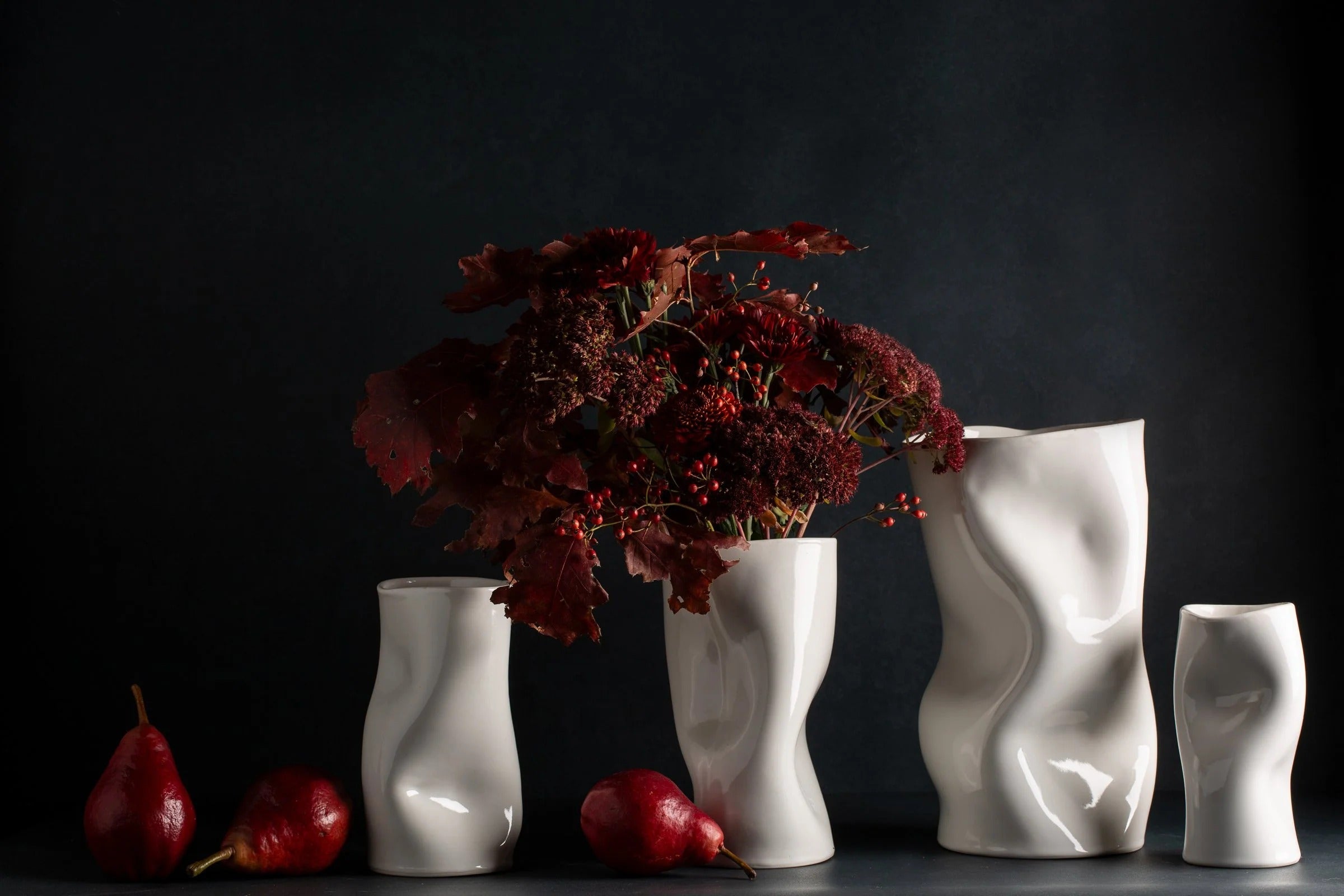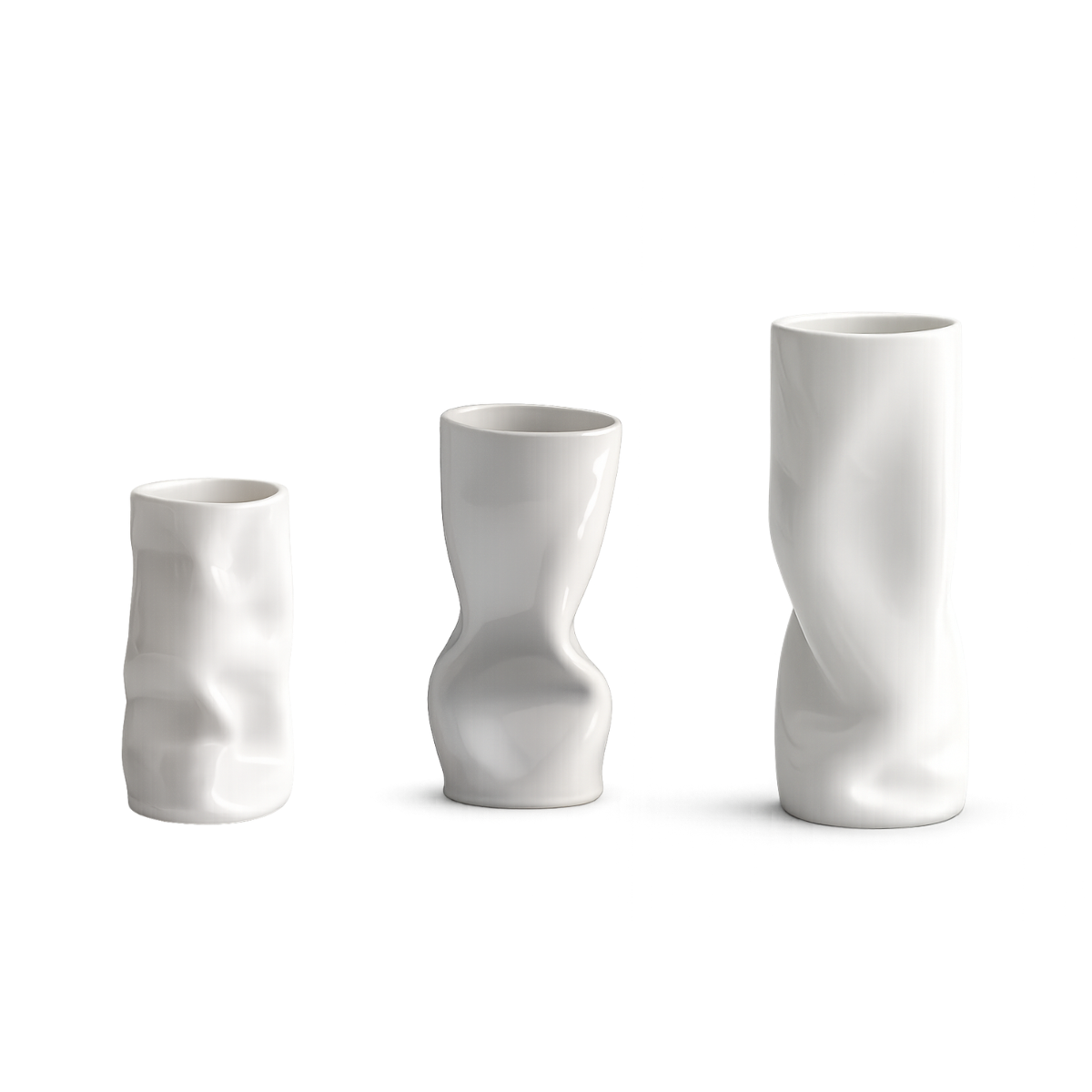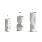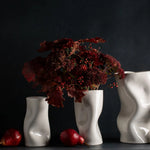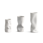 Reminiscent of a crinkled paper bag, this contemporary porcelain vase is light, playful and super fun! The shape and drama change at every angle.