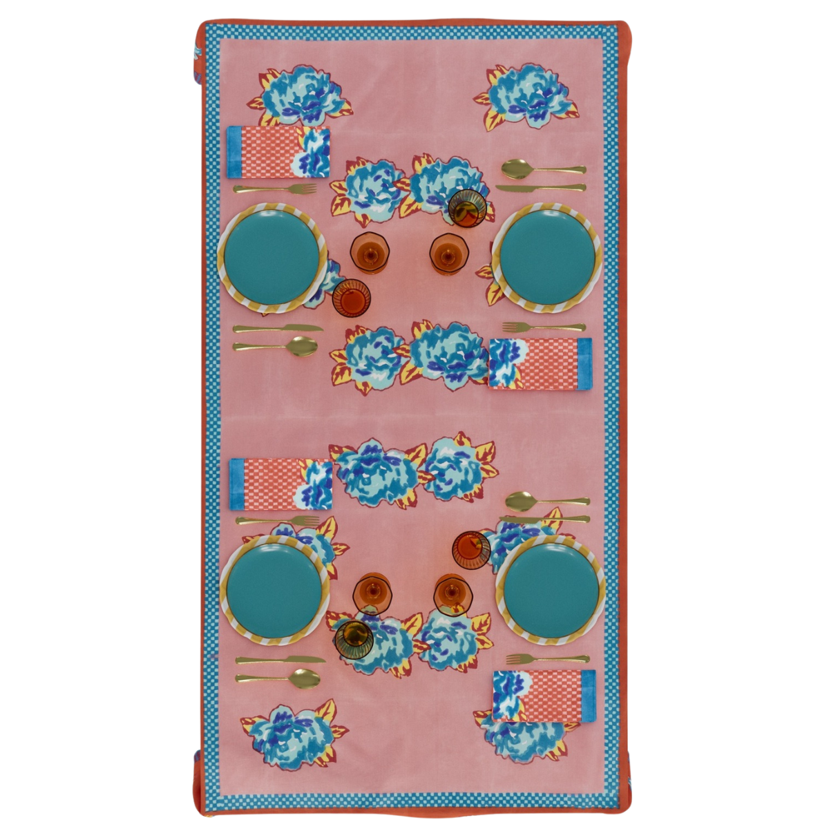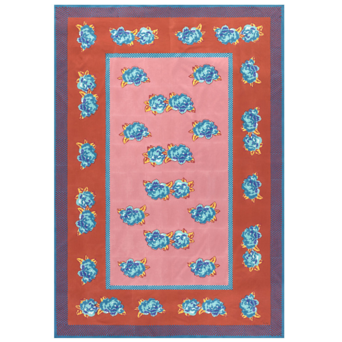 Richly dyed floral tablecloth by Lisa Corti.
