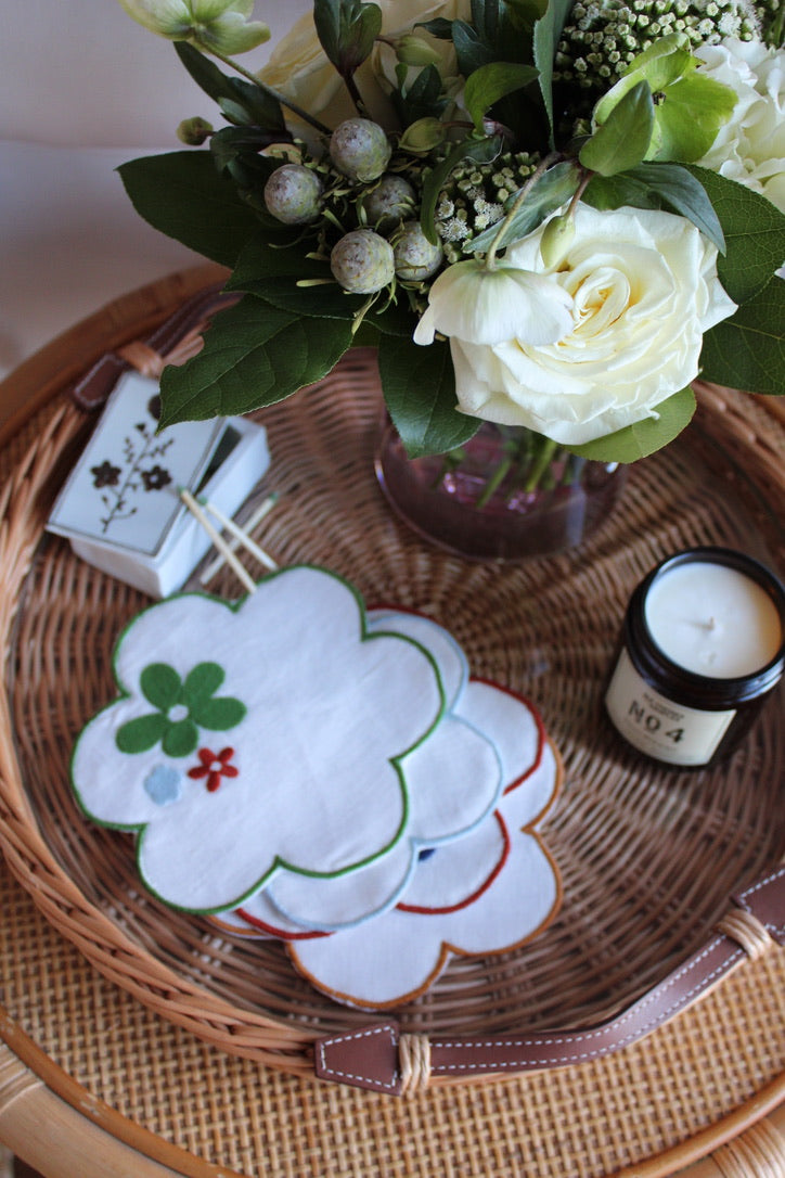 Floral Embroidered Linen Coasters | Set of 4