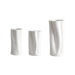 Inspired by the fluid movement of wavy line forms, the Flutter Vase reinterprets that rhythm vertically, resulting in a sculptural piece that feels both unexpected and elegant. Delicate vertical contours create a sense of motion, with the porcelain subtly shifting and softening as the form takes shape, giving each vase its own distinct character.