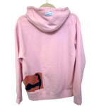 Made with love in Boston, these sweatshirts are one of a kind and handmade from upcycled materials. Our light pink Cape Cod Hoodie boldly shares our love for The Cape with denim letters on the front and a map of Cape Cod on the back right corner.