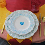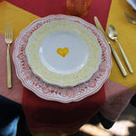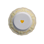 TWO WEBSTER EXCLUSIVE! We collaborated with the Italian ceramics house, Cosmolena, to bring you these gorgeous handmade plates from Italy. Classic Italian style -- bright white plate is rimmed with colorful hand painted design of kissing fish and embellished with a heart in the center. A favorite in our homes. Handmade in Ravello, Italy.