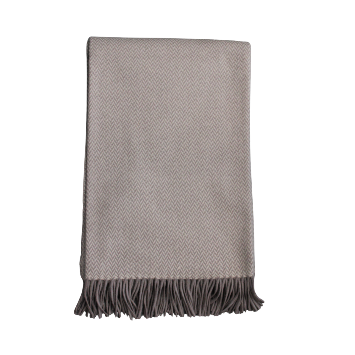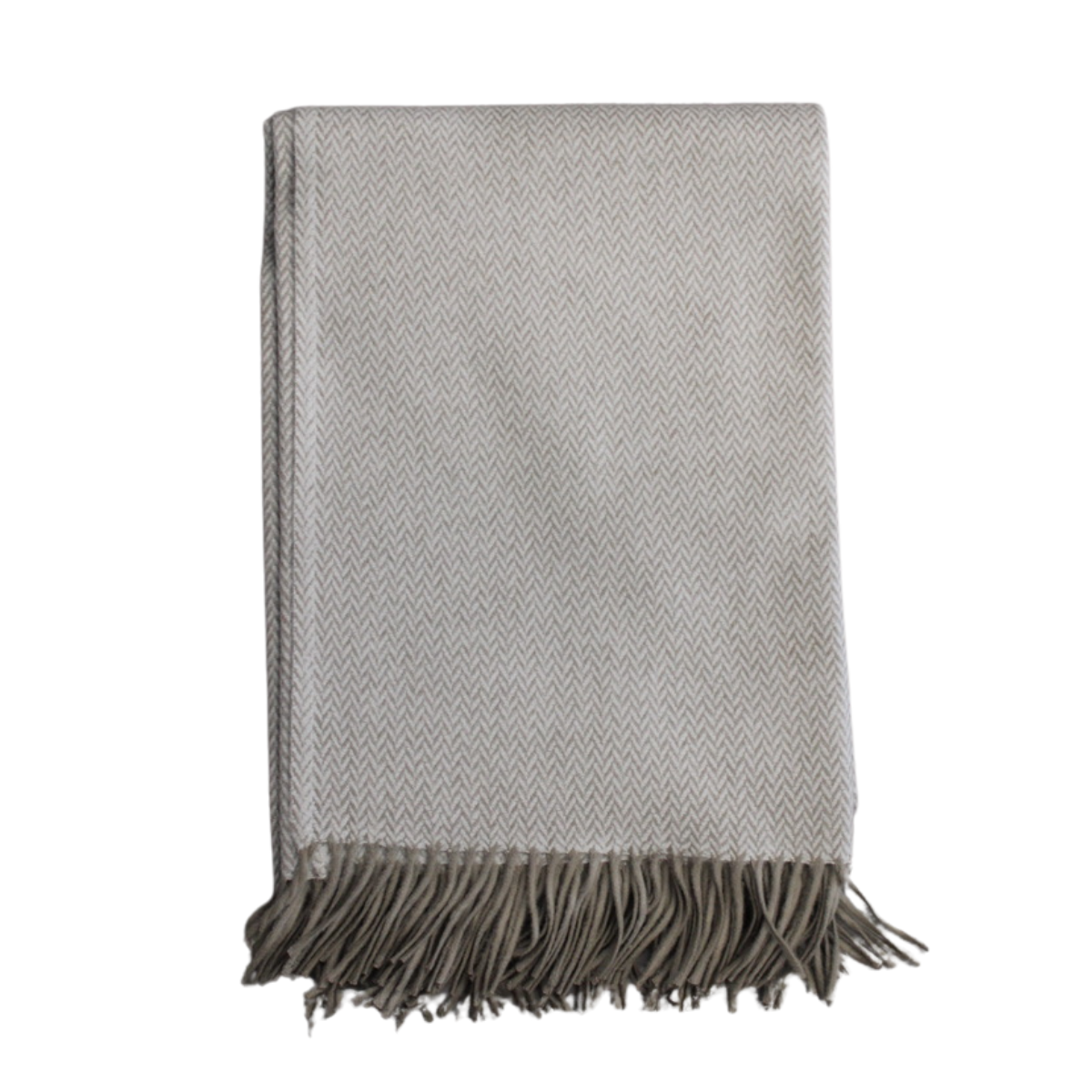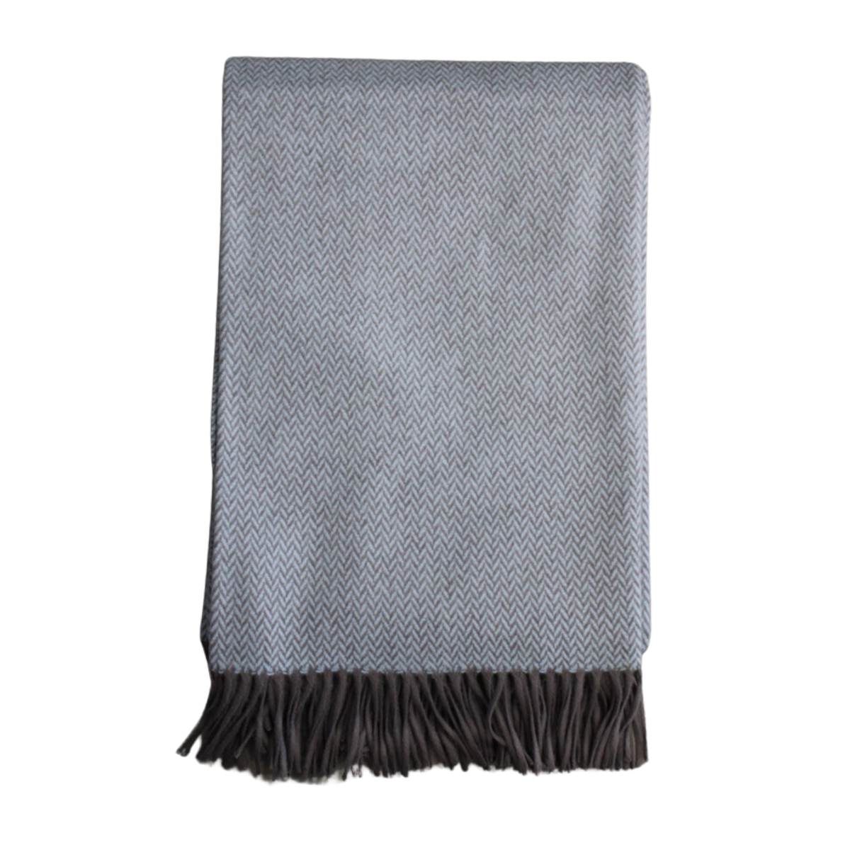 Gorgeous herringbone patterned throw blanket with fringe. Super soft, these blankets make a cold night feel cozy. Great on a sofa or the end of a bed. Handmade in Ezcaray, Spain.