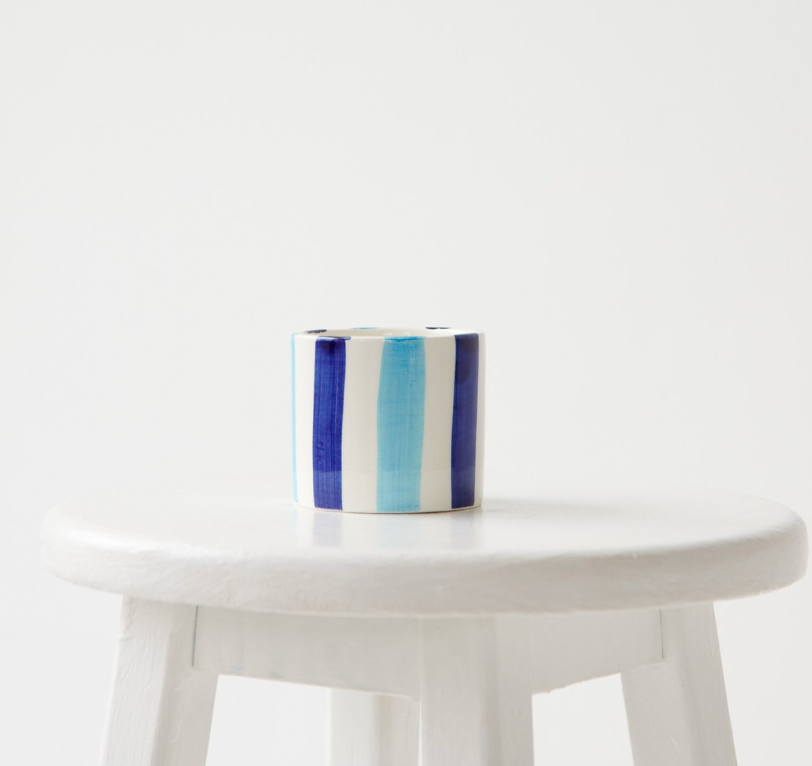 A handmade ceramic cup in bold stripes designed to celebrate the simple joys of Spanish life, and to bring sunshine & pleasure to your everyday.