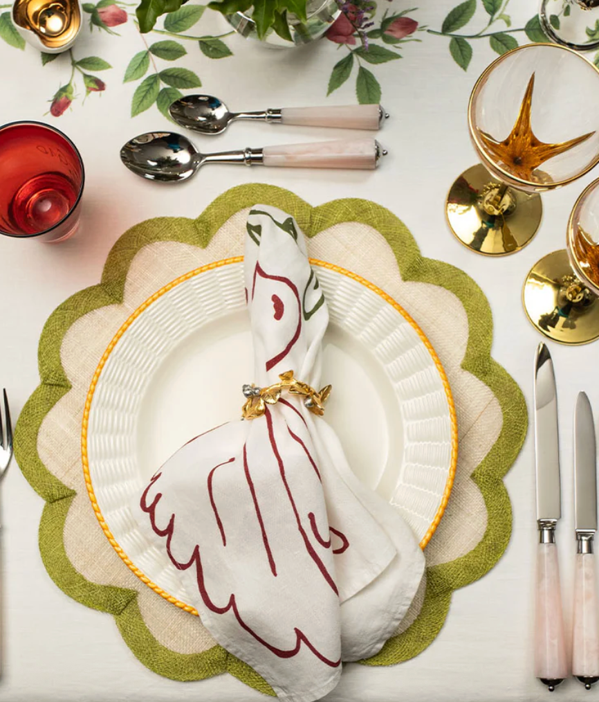 Elevate your holiday place setting with the ‘Red Doves’ Linen Napkin.