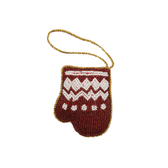 Single ornament with beads and metallic thread hand stitched on velveteen fabric; backed to velveteen fabric.