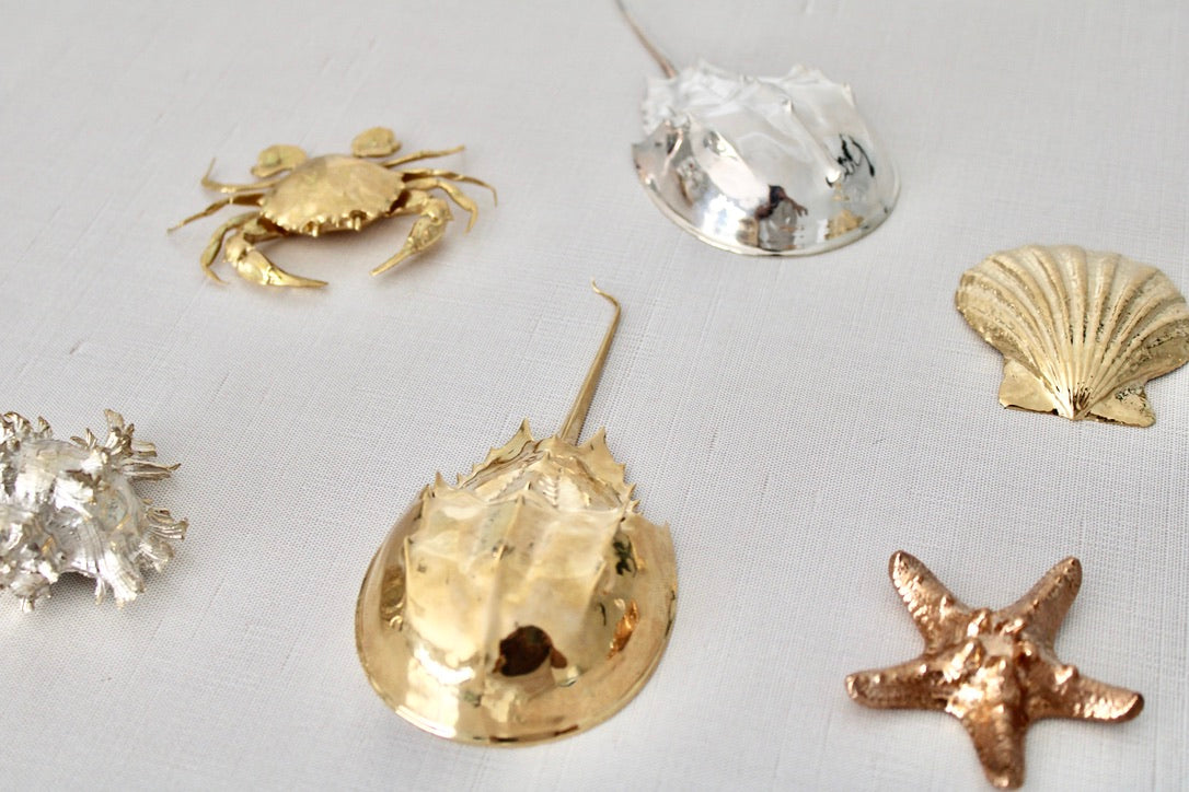 Meticulously crafted in New York City, these elegant sea creatures are fashioned from shells gathered along the shores of Fire Island, New England, and select tropical locales. The artist carefully molds each discovery, transforming them into refined paperweights, jewelry, and distinctive art pieces.
