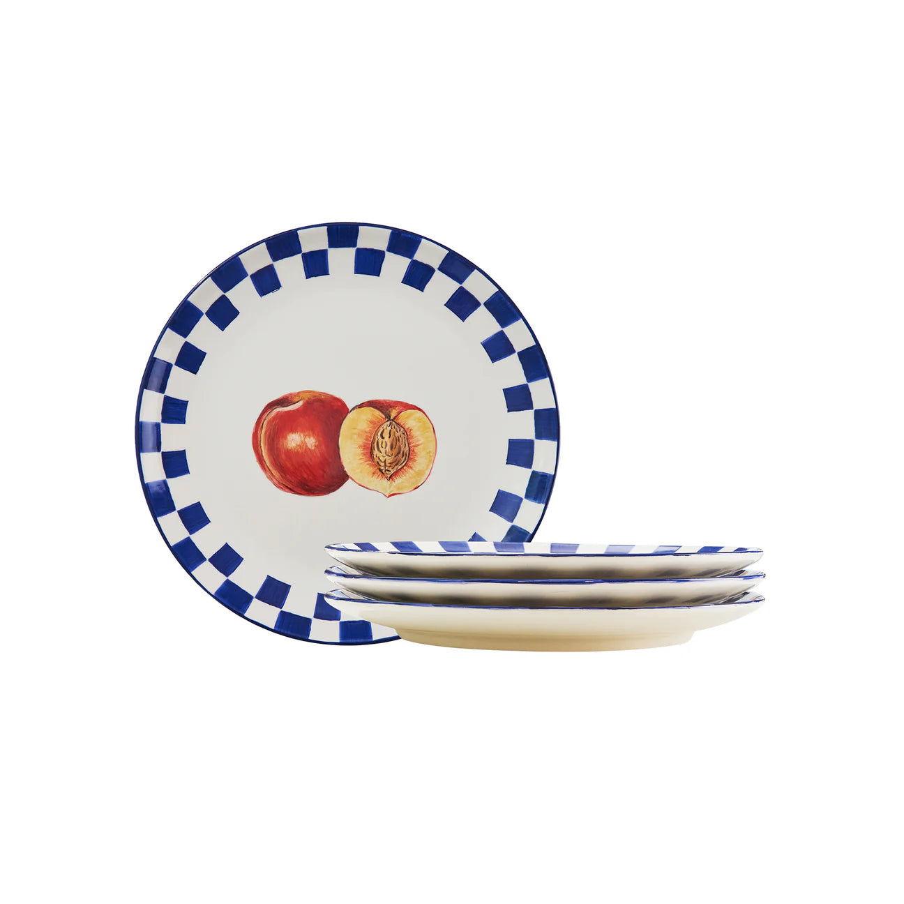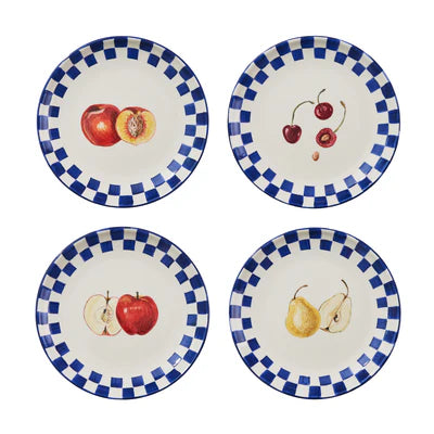 Each of our Still Life Collection plates are hand-painted in Canada and evoke sumptuous Renaissance-style art. Featuring a vibrant gingham trim and delightful, hand-painted fruit motifs, this four-piece ceramic set is like a little work of art for your table. Perfect for serving food, displaying in a cabinet, or hanging on a wall.