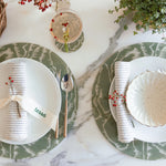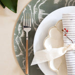 Tilda is sophisticated, tailored, and (quietly) dramatic. Woodsy and cool, Tilda loves a cozy fireside repast, and can handle soccer team dinner with finesse. This pattern is created by interior designer Leah O’Connell.