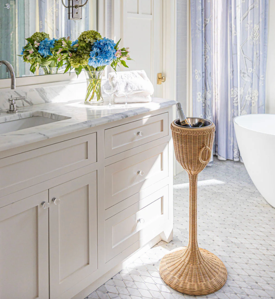 Cheers! Pop some bubbly and celebrate with a beautiful wicker champagne stand. Includes a stainless steel bucket insert.