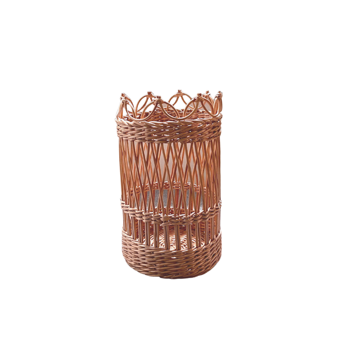 With its bespoke design, this woven piece makes the perfect vase for statement flowers or hurricane for soft candlelight. Handwoven in Europe, each piece comes with a removable glass insert.